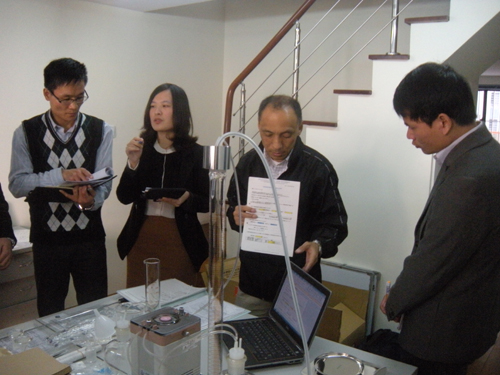 日本柴山科學(xué)器械制作所板倉先生對(duì)HOPE TECH職員進(jìn)行密度勾配液裝置培訓(xùn)