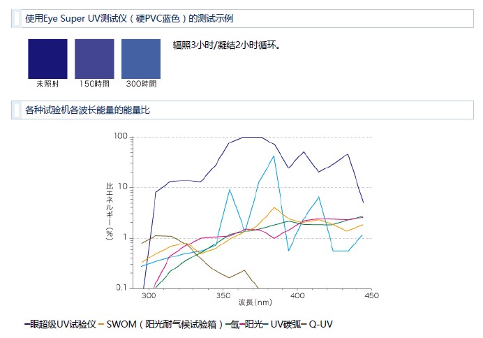 收集并使用了紫外線的強(qiáng)降解能力。Eye Super UV Tester是一款能夠以劃時代的速度進(jìn)行耐候性測試的測試機(jī)。它極大地縮短了戶外測試所需的測試時間,從幾個月到幾年,甚至在加速測試中可以縮短數(shù)百到數(shù)千小時,從而加快了研發(fā)質(zhì)量檢查的速度。